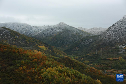 這是2025年10月17日在平?jīng)鍪嗅轻紖^(qū)拍攝的太統(tǒng)崆峒山國家級(jí)自然保護(hù)區(qū)深秋初雪景色。(新華社發(fā) 吳希會(huì) 攝)