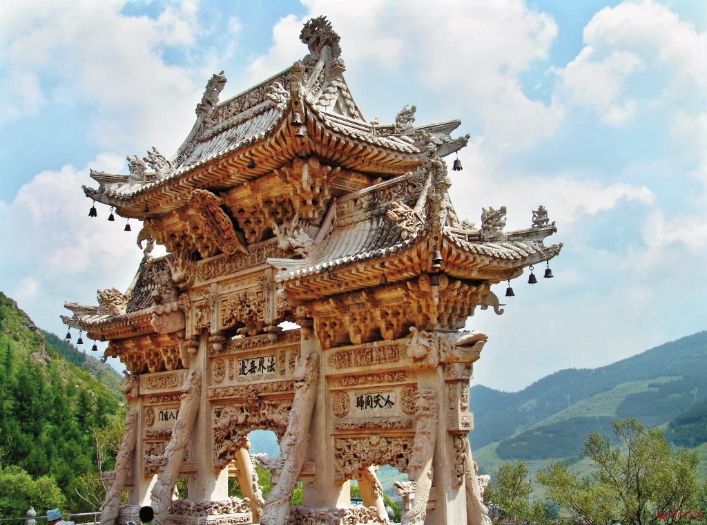 忻州古城泰山廟木牌樓 馮曉磊攝 古牌坊中有許多是藝術(shù)珍品,從一個側(cè)面反映了建造者的匠心獨運、精益求精。五臺山龍泉寺始建于宋代,民國初重建,山門外的漢白玉石牌坊,堪稱我國漢白玉石雕建筑藝術(shù)珍寶,是定襄縣宏道鎮(zhèn)的胡明珠率眾,用了六年時間完成的。石牌坊高9米,寬14米,四柱三門,上蓋三個樓頭,分上下兩層。寺院當(dāng)時在全國投標(biāo)招賢,胡明珠帶著設(shè)計圖紙和小樣數(shù)次前往寺院面見老僧,心誠則靈,胡明珠最終中標(biāo)。在胡明珠親自組織指揮下,1925年秋工程破土動工,由山西、河北的百余名匠人共同雕建,歷時六年,終于在1931年秋落成。石牌坊形制剛健挺拔,通體精雕細(xì)琢,花草細(xì)如發(fā)絲,鳥獸呼之欲出,中央雕刻著“佛光普照”四個大字,豎匾上是“峻凌霄漢”,僅蛟龍就有108條,獅子20只,姿態(tài)各異,生動逼真。這一不朽杰作,為我國雕建藝術(shù)史譜寫了新的一頁。胡明珠這顆民間藝苑中的“明珠”與龍泉寺石雕牌坊同放異彩,萬古流芳。