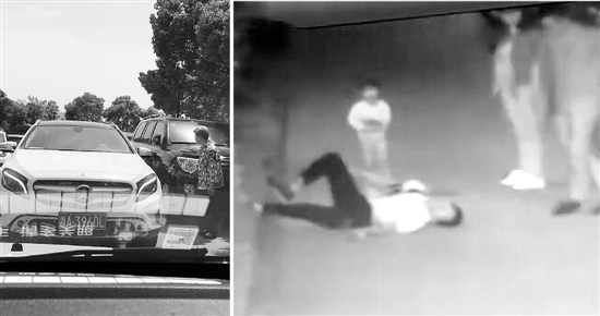 “沒想到,那女的二話不說,沖上來就很重地推了我一把。我想還手,又覺得不合適,就開始拿出手機來錄像取證,才錄了八九秒鐘,就有人過來把手機打掉了,中間還聽到他們家的小孩也在罵我。緊接著那男的就沖上來了,說了一句大致意思是‘你小毛頭一個,我一下就把你拎起來’,感覺他話沒說完,我就被他抓起來扔到地上了?!?/p>