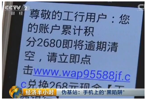 | 央視曝光偽基站欺詐猖獗 3條短信騙走5000元 |