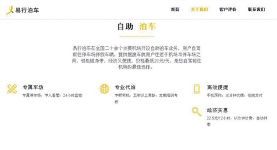 易行泊車官網(wǎng)上的自我介紹,稱是“自駕前往機場的最佳選擇”。網(wǎng)絡(luò)截圖