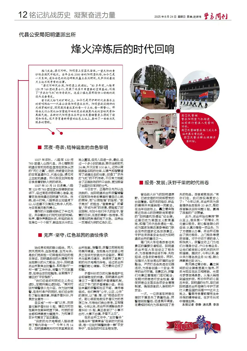 今日安寧,正是昨日先烈以血洗就的。當(dāng)陽明堡派出所民警輔警們?cè)谀菆鰝髌婀适吕锫犞约盒奶念l率,那“以弱勝強(qiáng)”的堅(jiān)韌、“敢于亮劍”的擔(dān)當(dāng)、“智勇兼?zhèn)洹钡念V?、“赤誠為民”的深情,便超越了時(shí)空限制,與如今他們平凡的堅(jiān)守、智慧的交織、無言的奉獻(xiàn)一脈相承。那深情如同奔涌的地下水脈,滋養(yǎng)出一支竭誠為民的紅色隊(duì)伍。