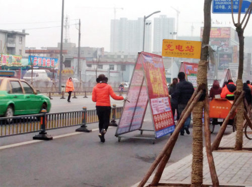占用非機(jī)動(dòng)車(chē)道進(jìn)行廣告宣傳(王國(guó)棟 攝)