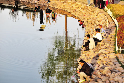 公園游人無視"禁止垂釣"