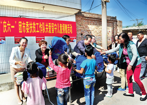 5月28日上午,共青團忻州市委駐代縣扶貧工作隊和志愿者組織代表,深入到所包扶的貧困山區(qū)陽明堡鎮(zhèn)牛村,開展慶“六一”關(guān)愛留守兒童捐贈活動,向20名留守兒童捐贈了書包、文具和課外讀物,表達了對留守兒童的關(guān)愛。同時動員留守兒童的爺爺、奶奶為忻州“申旅”投票。(石俊文 攝)