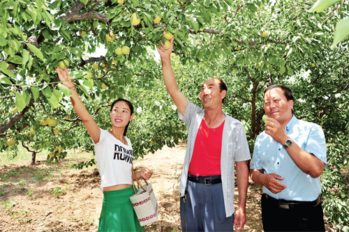 夏至?xí)r節(jié),代縣胡峪鄉(xiāng)望臺村的1500 畝白水杏喜獲豐收,果農(nóng)們正在起早貪黑收獲勞動果實(shí),并通過代縣惠生活微信平臺推銷產(chǎn)品。該村作為全縣干鮮果經(jīng)濟(jì)林基地,尤其盛產(chǎn)優(yōu)質(zhì)白水杏,去年全村僅干鮮果一項(xiàng)就收入640 萬元,人均純收入6000 余元,真正實(shí)現(xiàn)了“杏”福敲門,精準(zhǔn)脫貧。(石俊文 劉睿 攝)