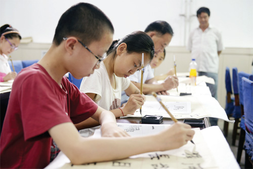 7 月17 日,在靜樂縣青少年文化活動(dòng)中心,孩子們正在認(rèn)真練習(xí)書法。進(jìn)入暑期以來(lái),該縣興趣特長(zhǎng)班又火熱起來(lái),學(xué)生們利用暑假時(shí)間投身于各自的興趣愛好之中,讓自己的假期變得更為充實(shí)、更有意義。(閆曉梅 攝) (責(zé)任編輯:李冬梅) |