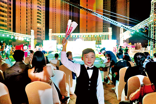 月光皎潔,清輝遍灑,這夜雖是農(nóng)歷八月十三,月亮卻已迫不及待地圓了起來(lái)?;ê迷聢A、春花秋月、花前月下……月宮是神話(huà)中的仙境,而此時(shí)泛華酒店的后花園里也如仙境一般,琴、詩(shī)、書(shū)法共同演繹《春江花月夜》,讓現(xiàn)場(chǎng)的500余名觀(guān)眾如癡如醉。面容清秀、刺繡大紅旗袍在身的琴師端坐在舞臺(tái)的左側(cè),雙手拂動(dòng),琴聲綿綿,舒心悅耳;鋪紙、執(zhí)筆、蘸墨、揮毫,舞臺(tái)中央的呂峰仿佛置身自家書(shū)房之中,墨香中三幅書(shū)法作品轉(zhuǎn)瞬完成;“醉眼看世界,朦朧看人生……李白醉了,醉了!”舞臺(tái)右側(cè)的朗誦者孫美琴將李白的一生揉碎在他的詩(shī)中,就著朦朧的月色,用獨(dú)特的聲線(xiàn)摻在她的情感中,沉醉了自己,也迷醉了觀(guān)眾。