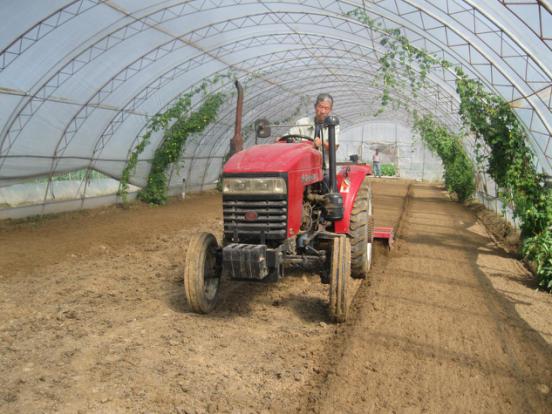 圖為25日拖拉機正在耕地和耱地。(賈金理 攝)