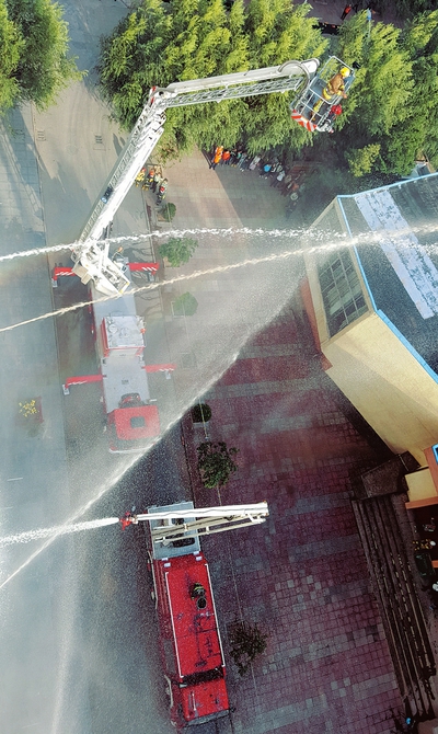 9月26日,在忻州師范學院內(nèi),當?shù)叵啦块T舉行了國慶節(jié)前應(yīng)急疏散演練,其中包括滅火器材使用、火場逃生自救等演練項目