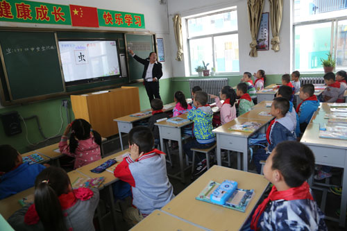 近日,在靜樂縣愛樂希望小學(xué),學(xué)生正通過交互式多媒體教學(xué)方法上課。老師高興地說:“有了多媒體真方便,以前講一個例題要花幾分鐘抄寫在黑板上,現(xiàn)在只需幾秒鐘就顯示在頻幕上,既節(jié)省時間又提高課堂效率。”近年來,該縣加大教育投資力度,改善辦學(xué)條件,為學(xué)生上課提供便利。(閆曉梅 攝)