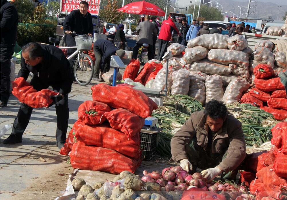 11月10日,原平市青年街農(nóng)貿(mào)市場(chǎng)紅紅火火十分熱鬧,市民們正在挑選購(gòu)買(mǎi)冬儲(chǔ)菜,土豆、蘿卜、大白菜、大蔥等。該市大力發(fā)展一村一品種植業(yè),有力投放市場(chǎng),滿足市民需求,也增加農(nóng)民收入。(趙春曉 攝)