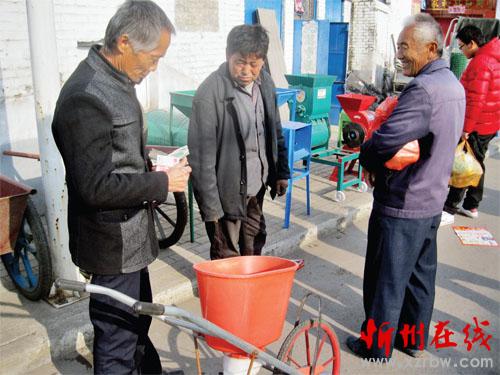 十一月十七日是河曲縣巡鎮(zhèn)趕集日,十里八鄉(xiāng)的農(nóng)民紛紛趕來選購小型農(nóng)機(jī)具。近年來,該縣農(nóng)民在農(nóng)機(jī)具購置補(bǔ)貼政策鼓勵下,購買農(nóng)機(jī)熱情高漲,極大地提高了農(nóng)業(yè)生產(chǎn)效率。圖為農(nóng)民正在購買播種機(jī)。(賈金理 攝)