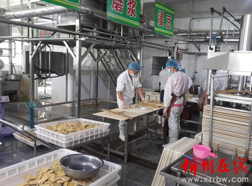 一套套全新的機械設備不停地運轉(zhuǎn),新鮮的大黃豆經(jīng)過浸泡——殺菌——磨漿——過濾——煮漿——混合——凝固——劃腦——壓制成型,透著香味的豆腐干經(jīng)過真空包裝,通過物流運往北京、太原、大同等地的超市,這是繁峙縣綠源亨通食品有限公司豆腐干生產(chǎn)線,2016年已加工500噸豆腐干,實現(xiàn)產(chǎn)值500萬元,帶動周邊上百名農(nóng)民增收。(喬偉 攝)