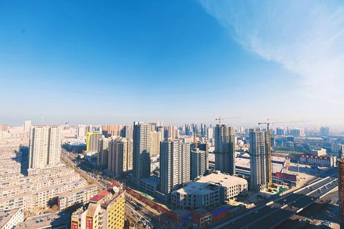 1月9日,太原市空氣AQI指數(shù)81,市民迎來(lái)了一個(gè)干凈透亮的二級(jí)天。圖為蔚藍(lán)天空下省城南內(nèi)環(huán)西街附近景色。(本報(bào)記者 阮洋 攝)