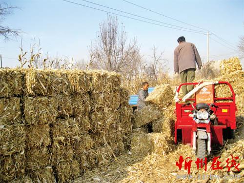 河曲縣南元村3 戶農(nóng)民購置秸稈打捆機(jī),利用冬閑時間幫助村民處理田間玉米秸稈,將其作為飼草銷售,既增加收入,又避免了因焚燒秸稈造成大氣污染,對保護(hù)環(huán)境起到了積極作用。圖為1 月18 日他們正將秸稈捆裝車,然后運(yùn)到存放場所碼垛。(賈金理 攝)