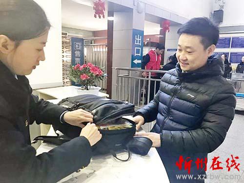 本報(bào)訊2月2日,農(nóng)歷大年初六,上午10點(diǎn),忻州火車站“心之舟”服務(wù)臺(tái)工作人員杜蕊在巡視候車室時(shí),發(fā)現(xiàn)座椅上有一個(gè)黑色背包(內(nèi)裝嬰兒用品),問詢周圍旅客無人認(rèn)領(lǐng)后,立即聯(lián)系廣播室對(duì)售票廳、站臺(tái)進(jìn)行廣播失物招領(lǐng)。此時(shí),在站臺(tái)上等車的旅客張先生聽到廣播,意識(shí)到背包丟失,立即聯(lián)系到工作人員,在登車前取回遺落的背包。張先生稱,自己攜帶了好幾件行李,檢票時(shí)著著急急也沒有清點(diǎn),他非常感謝車站的工作人員。