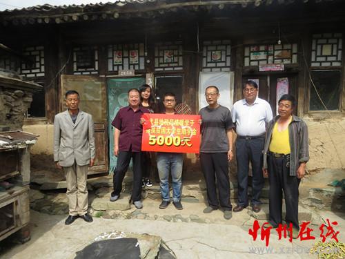 圖為代縣地稅局情暖學(xué)子,為定點(diǎn)扶貧村聶營鎮(zhèn)康上莊貧困大學(xué)生卜桂元捐贈(zèng)助學(xué)金5000元,解了他全家的燃眉之急。(代縣地稅局李九龍 攝)