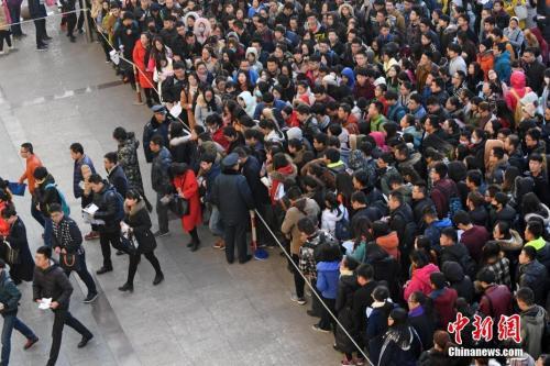 資料圖:山西太原,參加公務(wù)員考試的考生查看考場分布。 韋亮 攝