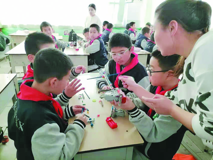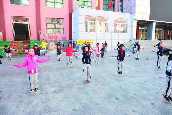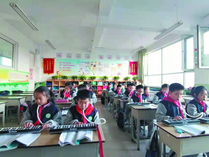 冬日暖陽(yáng)下,忻州市實(shí)驗(yàn)小學(xué)校園里一派生機(jī)勃勃的景象。武術(shù)訓(xùn)練場(chǎng)上,孩子們正在認(rèn)真扎馬步、練拳術(shù),一招一式打得虎虎生威,眼睛里閃爍著堅(jiān)毅和自信的光芒。百人腰鼓隊(duì)排著整齊的隊(duì)伍,伴著音樂(lè)的節(jié)奏不停變換著步伐,鼓槌上的紅綢子上下舞動(dòng),看得人眼花繚亂?;ㄊ交@球挑戰(zhàn)籃球極限,展示籃球技術(shù)和表演的完美結(jié)合。花樣跳繩中,孩子們?cè)诃h(huán)擺的繩索中做著各種跳躍動(dòng)作……操場(chǎng)上,熱火朝天,教學(xué)樓里,每一間教室里都散發(fā)著濃濃的趣味性?!耙黄惨晦?,書(shū)寫(xiě)堂堂正正中國(guó)字”“編程要注意邏輯關(guān)系”“三原色是哪些顏色呢?”……這是市實(shí)驗(yàn)小學(xué)每周三開(kāi)展的第二課堂綜合實(shí)踐活動(dòng),也是孩子們最興奮最高興的校園時(shí)光。