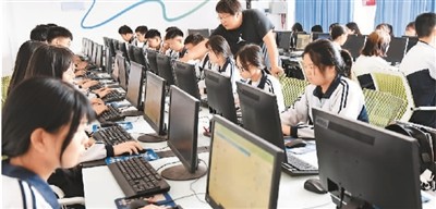 河北省邯鄲市涉縣職業(yè)教育中心電子商務(wù)專業(yè)學(xué)生在校內(nèi)項(xiàng)目實(shí)訓(xùn)基地進(jìn)行客服實(shí)踐。郝群英攝(人民圖片)