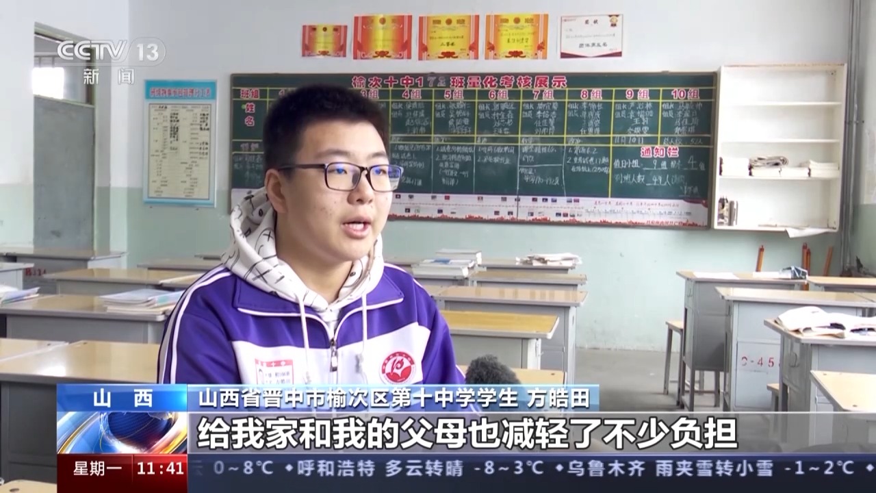 山西省晉中市榆次區(qū)第十中學(xué)學(xué)生 方皓田:學(xué)校為我們每個學(xué)生都上了校方責(zé)任險,算下來醫(yī)療費除醫(yī)保報銷部分以外,剩余的12000多元都給我報銷了,給我家和我的父母也減輕了不少負擔(dān)。