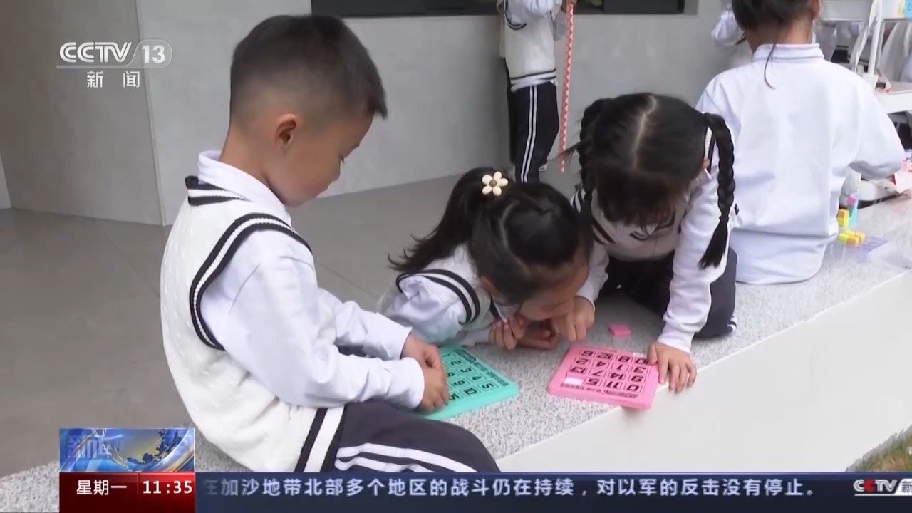 記者看到,因為面積局促,學(xué)校對所有活動空間都進行了精心規(guī)劃改造。在教室里,每個班都設(shè)置了像這樣的游戲角,利用飛行棋、自制古詩卡等三五分鐘就能開展起來的益智類小游戲,讓同學(xué)們在有限空間內(nèi)放松心情;學(xué)校還專門對這個閱讀空間進行了改造,增設(shè)了跳繩、乒乓球、鋼琴和國際象棋等室內(nèi)運動和游戲區(qū)域,在戶外,則增設(shè)了器械區(qū)和攀巖墻。
