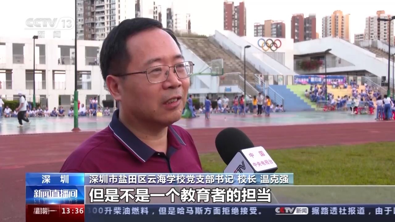 深圳市鹽田區(qū)云海學(xué)校黨支部書記、校長 溫克強:怕出事情,怕?lián)?zé)任,就把學(xué)生課間圈養(yǎng),確實這個是省時省力,但是不是一個教育者的擔(dān)當,也不是一個學(xué)校的擔(dān)當。應(yīng)該尊重教育規(guī)律,要為孩子們的健康著想。希望我們的孩子在這邊讀9年,他會科學(xué)地鍛煉,有這種鍛煉的好習(xí)慣,熱愛體育,熱愛生活,這就是我們追求的方向和育人目標。