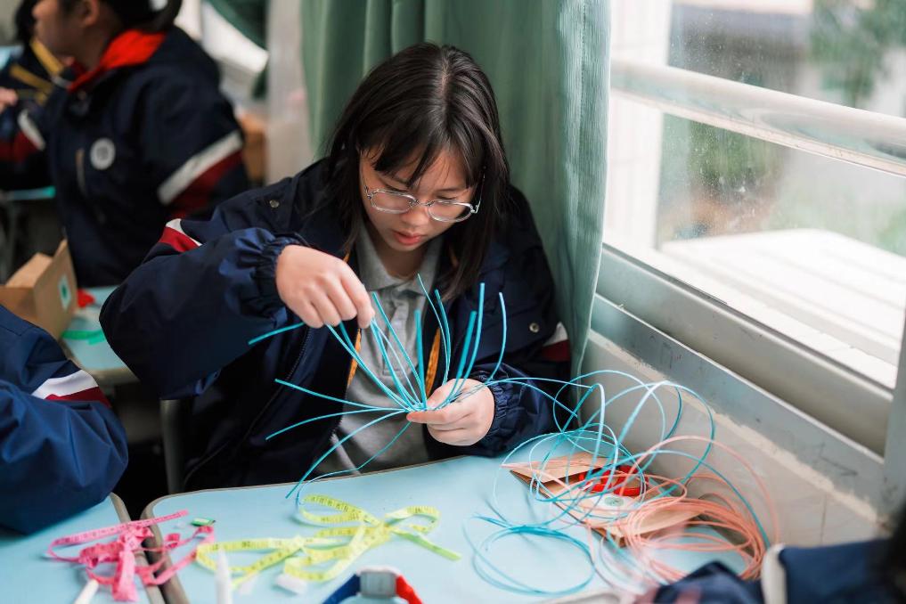 在廈門(mén)雙十中學(xué)開(kāi)設(shè)的藤編課上,學(xué)生們發(fā)揮創(chuàng)意編制籃筐。(雙十中學(xué)供圖)