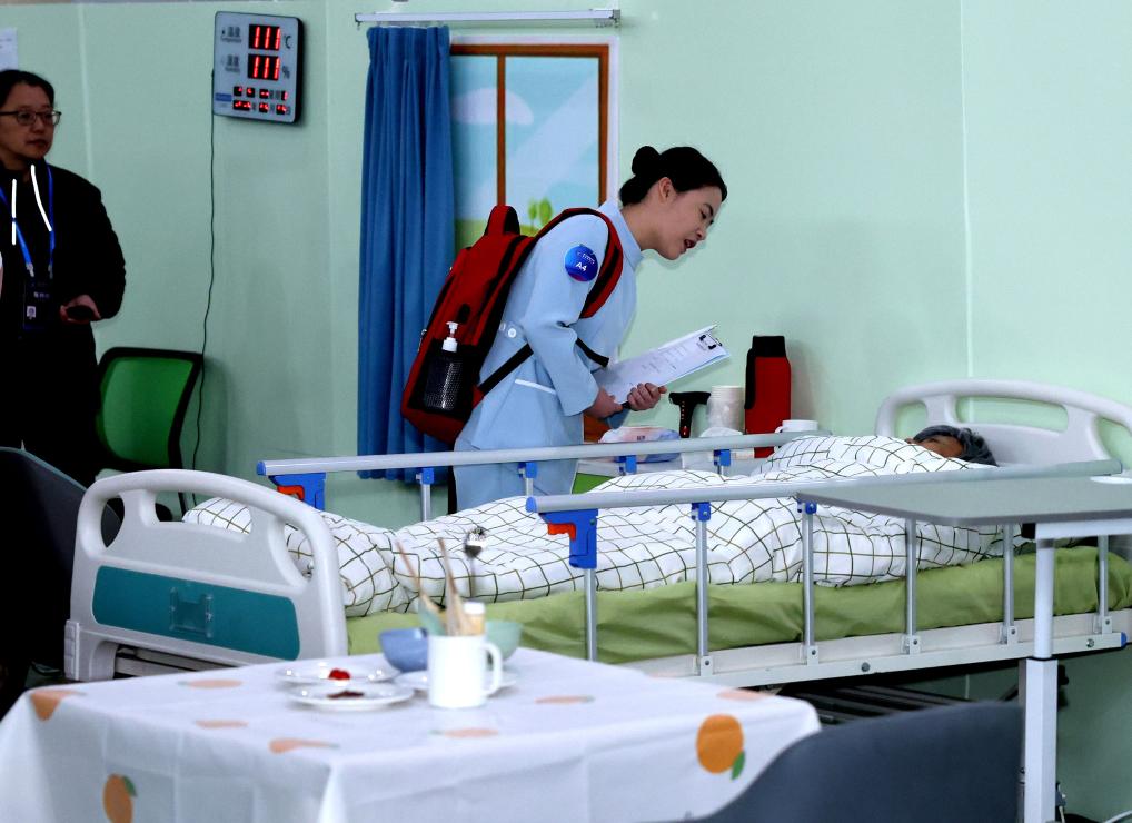 5月8日,第二屆全國鄉(xiāng)村振興職業(yè)技能大賽養(yǎng)老護(hù)理項目比賽現(xiàn)場。新華社記者 劉續(xù) 攝