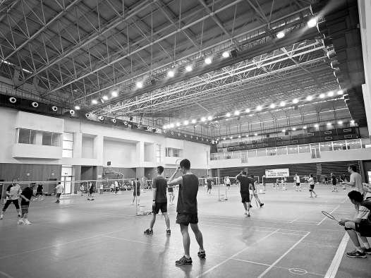 昨天下午,匯文中學羽毛球館里非常熱鬧。場地中,14張羽毛球網(wǎng)都在使用中,場上既有中小學生,也有成年人。伴隨著球拍擊打出的清脆響聲,白色的羽毛球在空中劃出一道道優(yōu)美的弧線。