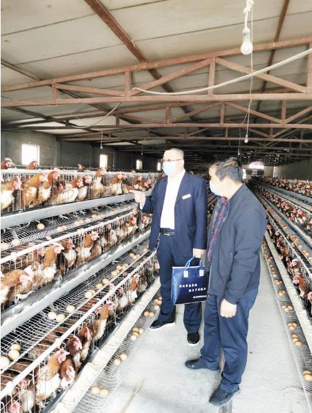 圖為該行員工對李大叔家的蛋雞生產(chǎn)情況進(jìn)行回訪。