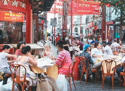 圖為2020年8月9日,英國倫敦一家中餐館座無虛席。
