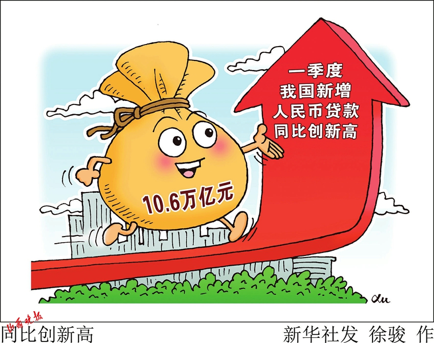 據(jù)新華社電 我國首季金融統(tǒng)計(jì)數(shù)據(jù)4月11日出爐,當(dāng)季新增人民幣貸款同比創(chuàng)新高。中國人民銀行當(dāng)日發(fā)布的數(shù)據(jù)顯示,一季度我國人民幣貸款增加10.6萬億元,同比多增2.27萬億元。其中,3月份人民幣貸款增加3.89萬億元,同比多增7497億元。