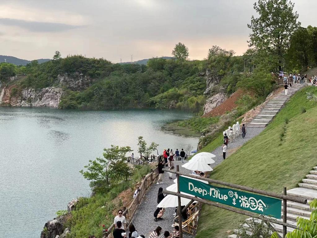 位于當?shù)丶t廟村的一家咖啡館坐落在湛藍的天然湖水和冷冽的巖石之間,被網(wǎng)友稱為“小冰島”,其前身是處廢棄十幾年的礦山。經(jīng)過一個年輕團隊的改造,在優(yōu)越的自然風光中變身“網(wǎng)紅”打卡地,不到一年內(nèi)累計接待游客35萬人次,最高單日接待量達8000人次,為紅廟村帶來600余萬元經(jīng)濟收益。