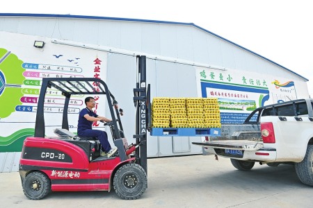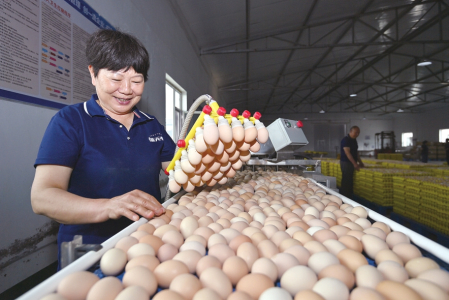 將檢驗(yàn)合格的雞蛋平穩(wěn)裝車運(yùn)往周邊超市。