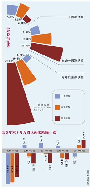 “我準(zhǔn)備加倉,感覺現(xiàn)在股市行情一路見漲?!币晃还擅窀嬖V新京報記者,在剛剛過去的7月第一周,他投的券商股已經(jīng)為他帶來1萬多的收益。 隨著上證指數(shù)站上3100點,A股走出“牛市格局”成了最熱話題。實際上,進(jìn)入7月,市場做多情緒高漲,新增投資者跑步進(jìn)場。有投資者認(rèn)為,牛市的號角被券商股吹響,A股又到了一年一度“七翻身”的時刻。 對此,有分析稱A股的韌性和獨立性有望延續(xù),不過下半年既不會進(jìn)入熊市狀態(tài),也不會進(jìn)入牛市狀態(tài)。 目前釋放了什么牛市信號? 個別股民“下場撿錢”最明顯的表現(xiàn),就是7月首周A股交易量明顯放大。上周,兩市合計成交量連續(xù)兩個交易日超過萬億元。據(jù)wind數(shù)據(jù)統(tǒng)計,A股總市值一周內(nèi)增長近3.8萬億元。 兩融方面,截至7月2日,A股融資融券余額為11903.15億元,較前一交易日增加140.38億元,連續(xù)三天單日增幅超100億元,累計增長約500億元。 此外,北上資金也在大幅加倉,一周內(nèi)凈流入288.62億元,數(shù)據(jù)統(tǒng)計,今年年初以來,北上資金凈流入超過1400億元。 資金“瘋狂”流入的同時,是投資者的加入和回歸。新京報記者從一頭部券商處了解到,6月下旬以來,新增投資者數(shù)量明顯上升,“現(xiàn)在幾乎都是線上自助開戶,所以營業(yè)部狀況還好,沒有出現(xiàn)網(wǎng)上傳說的人滿為患的情況?!币蝗虪I業(yè)部工作人員劉瑞(化名)告訴記者。 根據(jù)中國結(jié)算官網(wǎng)公布的數(shù)據(jù),盡管6月數(shù)據(jù)尚未公布,但5月已有大量新股民涌入市場。當(dāng)月新增投資者賬戶數(shù)量121.41萬個。具體來看,新增自然人賬戶121.25萬個,同比增長5.34%。截至2020年5月末,投資者賬戶數(shù)量合計1.66億個,其中自然人1.658億個,非自然人39.35萬個。 除了新股民外,一些老股民也蠢蠢欲動。“僵尸賬戶如何解凍”這個問題劉瑞在最近和多位老客戶溝通中被問及,“有的老客戶在2017年前后被確認(rèn)為休眠賬戶,就在前幾天找到我想要重新激活,再下場搏一搏”。 “七翻身”是否有道理? 此次牛市“刷屏”,一定程度上是人們對于7月A股“乘風(fēng)破浪”的期待。有分析稱,牛市的號角已由券商股吹響,被稱作“牛市發(fā)動機(jī)”的券商板塊在7月首個交易周中大放異彩。據(jù)wind統(tǒng)計,券商指數(shù)在5個交易日內(nèi)漲幅達(dá)到17.85%,在全部板塊中位列第二;年初至今,券商指數(shù)漲幅為15.29%。從個股來看,年初至今,券商股中漲幅最高的個股東方財富漲幅高達(dá)73.82%,光大證券、中信建投、國金證券年內(nèi)漲幅超過50%。 曾經(jīng)被總結(jié)為“五窮六絕七翻身,金九銀十”的說法到底準(zhǔn)不準(zhǔn)? 新京報記者統(tǒng)計了2010年7月-2019年7月間的數(shù)據(jù)發(fā)現(xiàn),事實上,指數(shù)在過去的10年中上漲與下跌的各約占半數(shù)。其中,滬指方面,近10年里,滬指6次在7月出現(xiàn)上漲,4次出現(xiàn)下跌。2010年7月為近10年的7月里上漲幅度最高的一年,漲幅為9.97%;2015年7月,滬指大幅下跌14.34%,是十年中7月跌幅最高的一年。 此外,深指方面,近10年中,深指出現(xiàn)4次上漲,2010年7月漲幅14.90%,為漲幅最高的一年;出現(xiàn)6次下跌,2015年7月13.70%的跌幅是10年中最大跌幅。 不過,從股票成交金額來看,盡管多數(shù)時間內(nèi)7月的A股交易金額并未成為當(dāng)年最高峰,但在過去的10年中,僅有2015年7月環(huán)比下降,其他年份中,均較上月有不同程度的上升。 而從橫向?qū)Ρ葋砜?,今年的A股市場還未出現(xiàn)“五窮六絕”的現(xiàn)象。在經(jīng)歷了年初的大幅下滑后,4月來A股市場就開始逐漸回暖。A股指數(shù)表現(xiàn)普遍優(yōu)于全球主要指數(shù)。截至北京時間6月30日收盤,創(chuàng)業(yè)板指上半年上漲35.60%,在全球重要指數(shù)中排列第一,深證成指以14.97%的漲幅位居第二,納斯達(dá)克指數(shù)上半年上漲10.05%居于第三,上證指數(shù)下跌2.15%位于第四。 A股“復(fù)蘇牛”要來了? “牛市的話,我們一直是看好復(fù)蘇?!?,自上半年至今一直堅定看多A股的安信證券首席策略分析師陳果這樣認(rèn)為。 分析師稱,當(dāng)前背景是全球流動性泛濫且近期看不到明顯收緊,中國經(jīng)濟(jì)數(shù)據(jù)持續(xù)超預(yù)期,且市場可預(yù)期未來一年中國經(jīng)濟(jì)與企業(yè)盈利同比增速將走向高增長,這是A股“復(fù)蘇牛”邏輯,這也是全面牛市邏輯?!凹词谷媾J?,也依然是有主線,我們認(rèn)為A股的主線,科技醫(yī)藥消費并沒有被根本動搖,除非牛市結(jié)束,那需要出現(xiàn)流動性顯著收緊或者外部極端事件”。 粵開證券策略分析師康崇利團(tuán)隊展望7月市場,認(rèn)為A股的韌性和獨立性有望延續(xù)。多重政策紅利護(hù)航下,有望穩(wěn)定市場預(yù)期,緩解個股在7月激增的解禁壓力。 對此,中南財經(jīng)政法大學(xué)數(shù)字經(jīng)濟(jì)研究院執(zhí)行院長盤和林告訴新京報記者,股民的熱情更多是被市場氛圍帶動,而一般券商股走強(qiáng),則說明市場進(jìn)入一輪上漲趨勢當(dāng)中。券商對股市周期以及資金和政策松緊最為敏感,所以這種熱情是正?,F(xiàn)象。 他認(rèn)為,市場進(jìn)入走強(qiáng)趨勢,資金推動因素為主,經(jīng)濟(jì)實體向好為輔。現(xiàn)階段市場流動性充裕,一方面因為全球