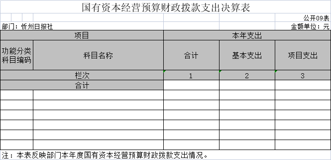說明:忻州日?qǐng)?bào)社沒有使用國(guó)有資本經(jīng)營(yíng)預(yù)算安排的支出,故本表無數(shù)據(jù)。