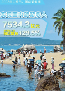 經(jīng)文化和旅游部數(shù)據(jù)中心測算,2023年中秋節(jié)、國慶節(jié)假期,全國國內(nèi)旅游出游人數(shù)8.26億人次,同比增長71.3%,按可比口徑較2019年增長4.1%;實(shí)現(xiàn)國內(nèi)旅游收入7534.3億元,同比增長129.5%,按可比口徑較2019年增長1.5%。