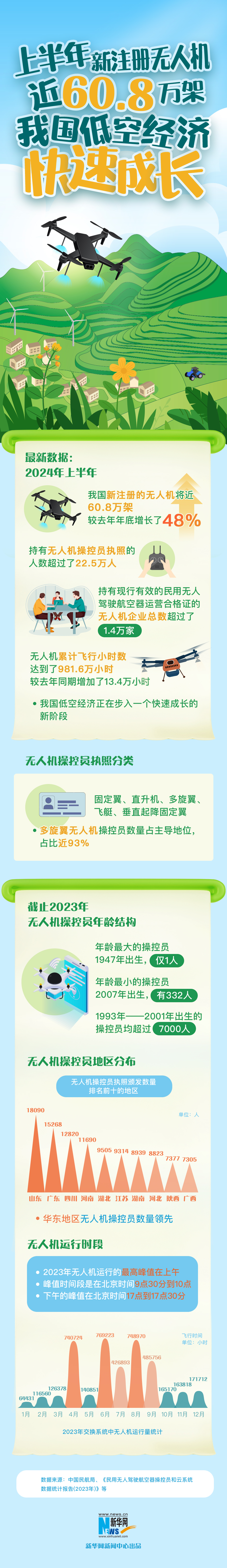 上半年新注冊無人機(jī)近60.8萬架 我國低空經(jīng)濟(jì)快速成長