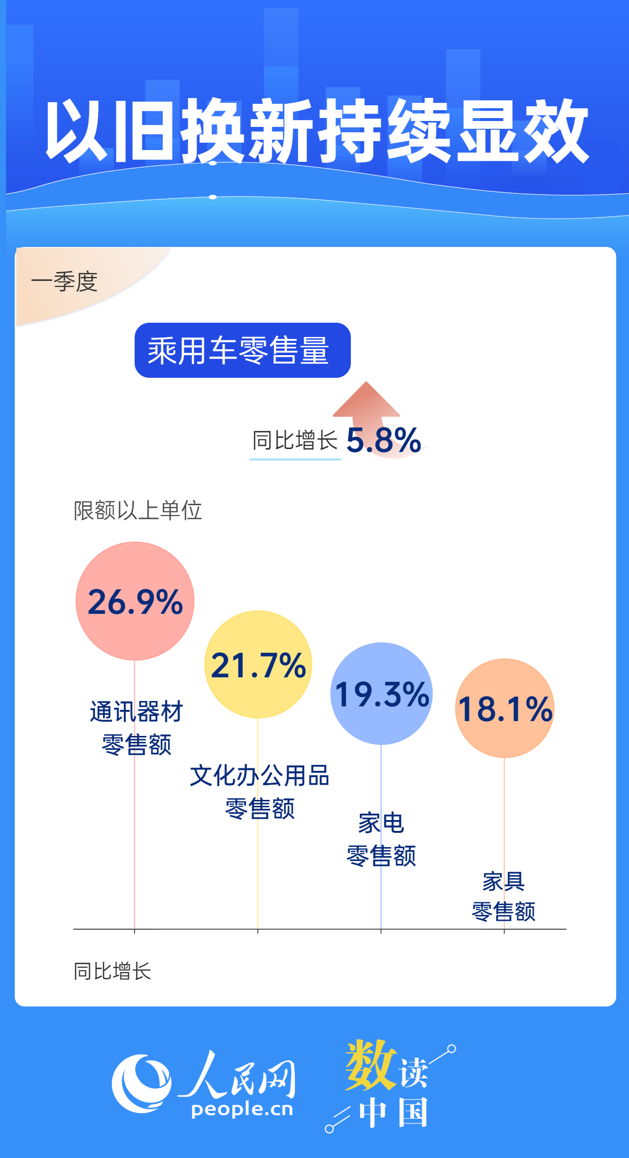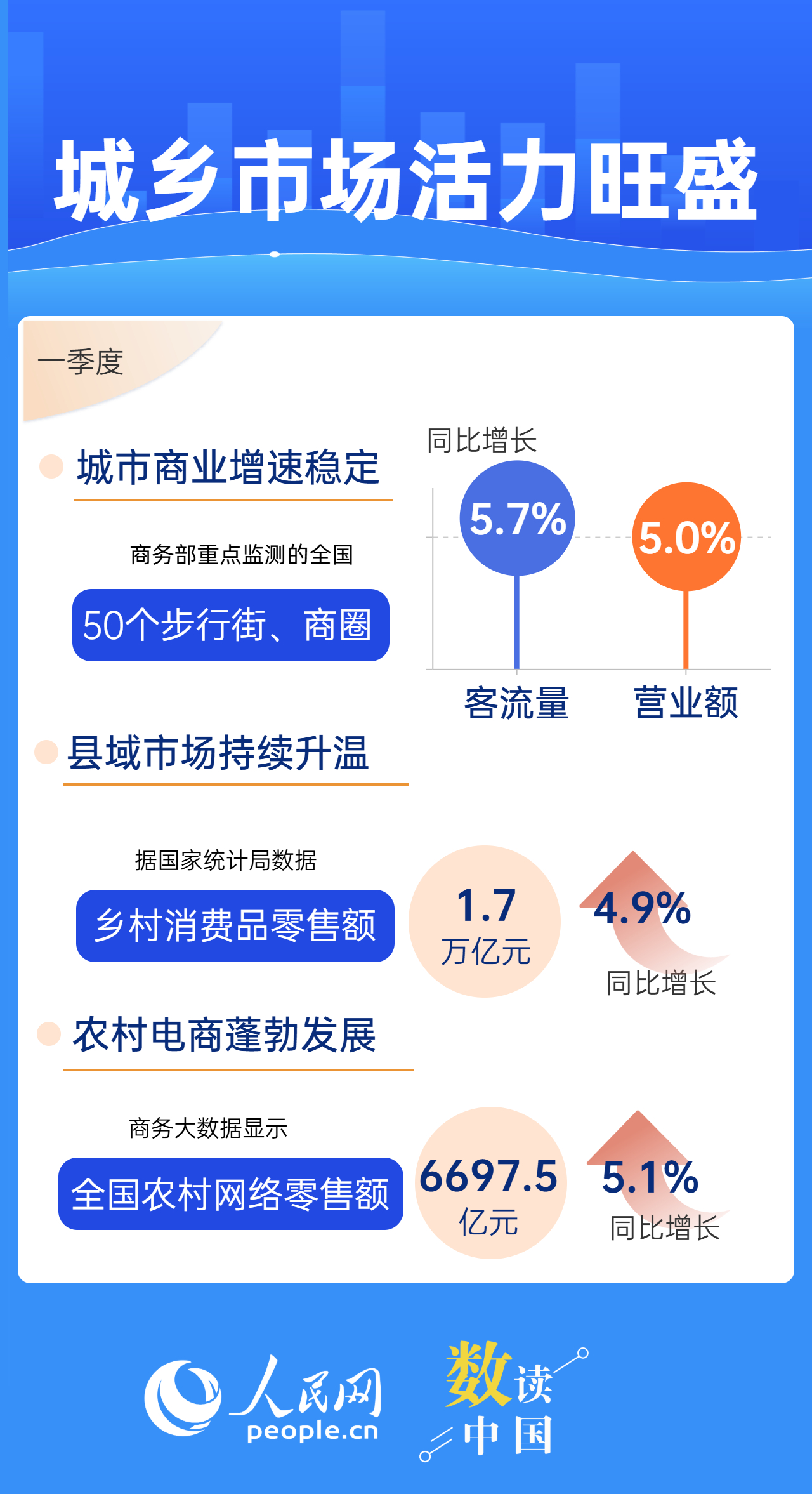 消費不僅關(guān)系民生福祉,也關(guān)系經(jīng)濟(jì)發(fā)展。商務(wù)部近日發(fā)布的數(shù)據(jù)顯示,今年一季度,消費市場總體實現(xiàn)平穩(wěn)開局;我國批發(fā)和零售業(yè)取得良好開局,為擴(kuò)大國內(nèi)需求、暢通國民經(jīng)濟(jì)循環(huán)提供有力支撐。