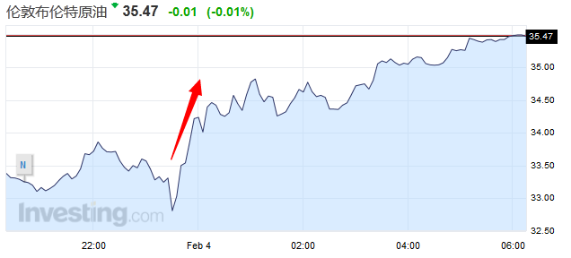 美國(guó)原油期貨結(jié)算價(jià)報(bào)每桶32.28美元,大漲2.40美元,或8%。布蘭特原油期貨結(jié)算價(jià)報(bào)每桶35.04美元,勁升2.32美元,或7.1%,盤中高見(jiàn)35.11美元。