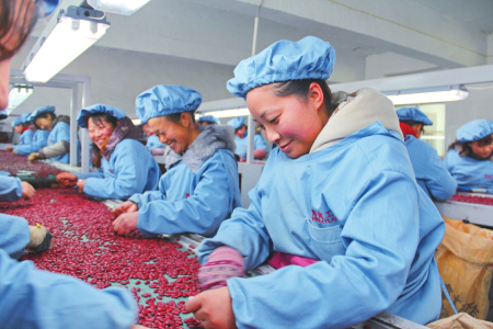 岢嵐縣種植紅蕓豆的歷史可追溯到上世紀(jì)90年代初。多年來,岢嵐縣紅蕓豆年均種植面積10萬畝以上,農(nóng)民人均種植2畝,占到全縣農(nóng)作物總播種面積的近三成;年均產(chǎn)銷量1.5萬噸,約占到全國總出口量的1/3,年出口創(chuàng)匯約800萬美元。現(xiàn)在已經(jīng)形成了以岢嵐縣為中心的特色紅蕓豆產(chǎn)業(yè)帶和紅蕓豆生產(chǎn)銷售集散地,帶動周邊地區(qū)種植紅蕓豆總面積約20萬畝。