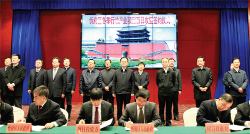 忻府區(qū)領(lǐng)導(dǎo)在簽約儀式上承諾,將繼續(xù)在市委、市政府的堅(jiān)強(qiáng)領(lǐng)導(dǎo)下,全面推進(jìn)項(xiàng)目攻堅(jiān)百日行動(dòng),堅(jiān)持叩門招商、開放包容、鞠親服務(wù),堅(jiān)決杜絕吃、拿、卡、要,嚴(yán)厲打擊破壞投資環(huán)境的人和事,全力營造親商、安商、富商的良好氛圍。集中人力、精力、財(cái)力,服務(wù)、指導(dǎo)、幫扶到位,落實(shí)任務(wù)、責(zé)任、措施,促開工、搶進(jìn)度,攻難點(diǎn)、破難題,強(qiáng)服務(wù)、治環(huán)境,發(fā)揚(yáng)“白+黑”、“5+2’’、“晴+雨”連續(xù)作戰(zhàn)精神,苦干實(shí)干,按照“九個(gè)一批”工作方案,全力解決已排查出的涉及現(xiàn)有32個(gè)項(xiàng)目中的51個(gè)問題,全力策劃好總投資222.16億元的華能風(fēng)光互補(bǔ)發(fā)電、上海航天光伏發(fā)電、北京富丞應(yīng)急救援工程等30個(gè)項(xiàng)目,全力促進(jìn)總投資41.25億元的田森匯生活購物廣場等6個(gè)項(xiàng)目落地,全力推進(jìn)總投資85.8億元的華能風(fēng)電、上海光伏發(fā)電等23個(gè)項(xiàng)目的開工建設(shè)。