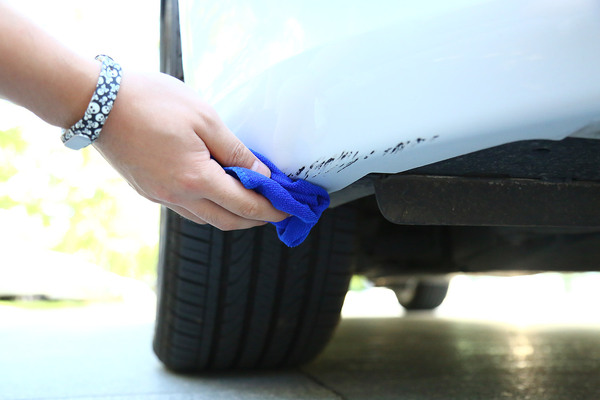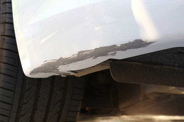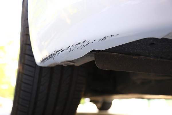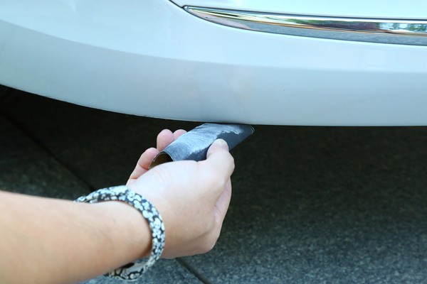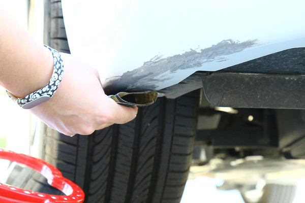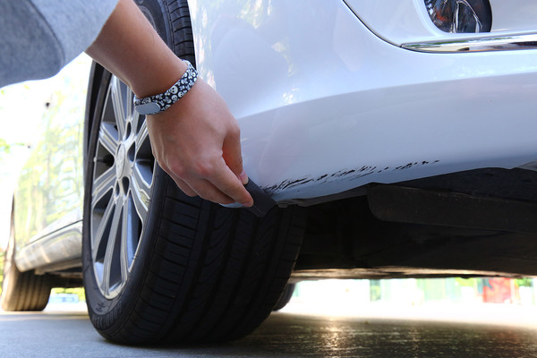 我們找來一輛前保險杠底部被蹭得面目全非的可憐車,在選擇補漆工具時要根據(jù)劃痕的情況進行合理選擇,不過就算是最嚴重的大面積傷及底漆的修補套裝,一般也不超過百元。