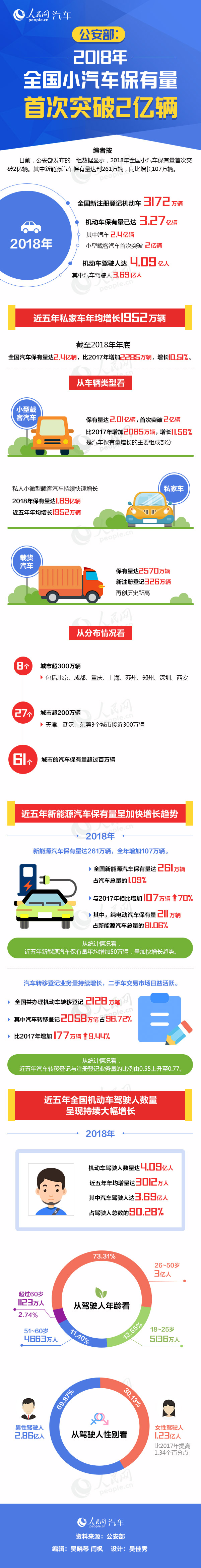 公安部:2018年全國小汽車保有量首次突破2億輛