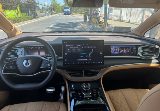 進(jìn)入車(chē)內(nèi),騰勢(shì)D9以“雙色豪華”為主題,提供云峰棕、曠達(dá)米等多元配色方案,搭配山海百納真木飾板與NAPPA真皮座椅,營(yíng)造出媲美百萬(wàn)級(jí)豪車(chē)的座艙氛圍。中控臺(tái)采用15.6英寸懸浮式大屏與10.25英寸全液晶儀表的組合,搭載騰勢(shì)Link超智能交互系統(tǒng),支持全場(chǎng)景語(yǔ)音控制、多屏共享及10種情景模式切換,操作流暢度與響應(yīng)速度均達(dá)到行業(yè)頂尖水平。