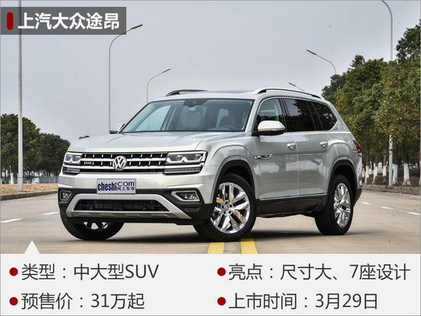 上汽大眾于2016年廣州車展發(fā)布了定位更高的中大型全新SUV-途昂(Teramont),新車將于今年3月29日正式上市。外觀上,新車采用全LED光源前大燈組、“W”型的日間行車燈,并與進氣格柵連為一體。內(nèi)飾配置方面,新車擁有1.18平方米全景天窗、自適應巡航、駕駛模式選擇、12.3英寸液晶儀表等。大眾為途昂配備了2.0T(高/低功率)和2.5T V6渦輪增壓發(fā)動機,其中2.5T發(fā)動機的額定功率可達220kW,峰值扭矩500Nm,并提供四驅(qū)系統(tǒng)。