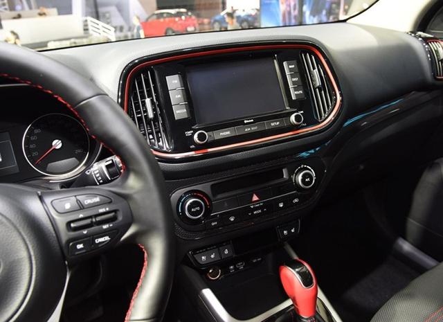 內(nèi)飾方面,新款KX3主要針對前臉部分進行了優(yōu)化設(shè)計仍然保持了起亞家族式設(shè)計風格,黑色內(nèi)飾搭配紅色縫線及紅色飾條營造出車內(nèi)時尚而又運動的內(nèi)飾氛圍。中控臺裝配有7英寸顯示屏,UI設(shè)計和界面較為簡潔,具備藍牙電話、車載導(dǎo)航、倒車影像等功能。