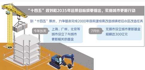 房企參與城市更新有望獲得更多支持。“十四五”規(guī)劃和2035年遠(yuǎn)景目標(biāo)綱要明確提出,實(shí)施城市更新行動(dòng)。老舊小區(qū)改造是城市更新的重要內(nèi)容之一,我國提出,到“十四五”期末,結(jié)合各地實(shí)際,力爭(zhēng)基本完成2000年底前建成需改造城鎮(zhèn)老舊小區(qū)改造任務(wù)。住房和城鄉(xiāng)建設(shè)部有關(guān)負(fù)責(zé)人曾表示,鼓勵(lì)房地產(chǎn)開發(fā)企業(yè)參與老舊小區(qū)改造。今年以來,多省市密集出臺(tái)相關(guān)舉措推進(jìn)城市更新。除上海設(shè)立了城市更新基金以外,據(jù)報(bào)道,7月份無錫市也設(shè)立了城市更新基金,基金規(guī)模達(dá)300億元,專項(xiàng)用于投資無錫舊城區(qū)改造和城市更新項(xiàng)目規(guī)劃、建設(shè)、開發(fā)及運(yùn)營等。此外,廣州、北京等城市也設(shè)立了與城市更新相關(guān)的基金。